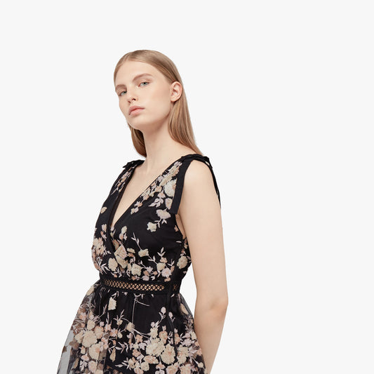 Self-Portrait Sleeveless Midnight Floral Mesh Dress in Black
