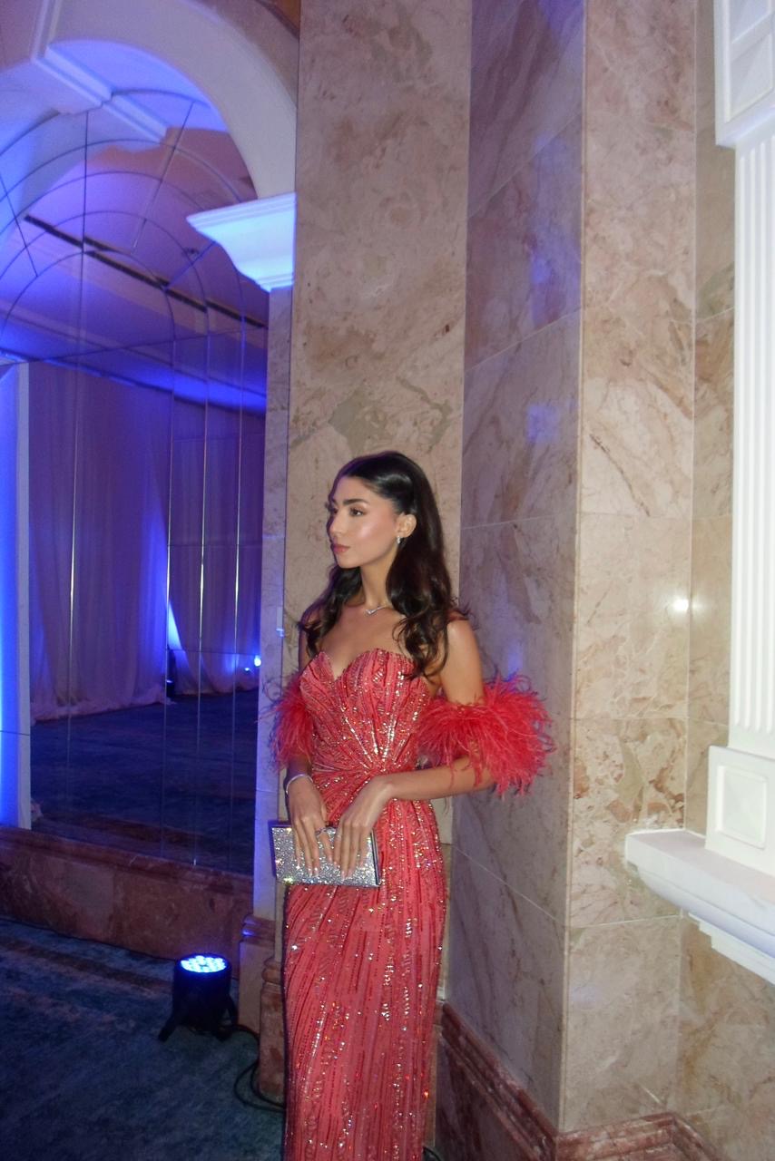 Strapless embroidered gown